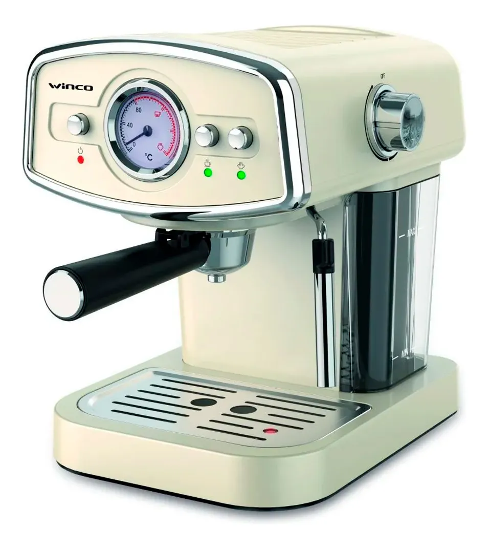 Bandeja superior calienta tazas. Visor de temperatura. Indicador de encendido. Bandeja antigoteo extraíble. Adaptador 3 en 1 para café molido y cápsulas sistema Nespresso y Dolce Gusto. 19 BAR de presión. Regulador de vapor.Tanque de agua de 1 litro. Espumador de leche. Potencia: 1050 W.