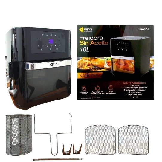 FREIDORA SIN ACEITE 10L + 8 ACCESORIOS ♦PANEL DIGITAL ♦CIRCULACION DE AIRE ♦TEMPORIZAOR