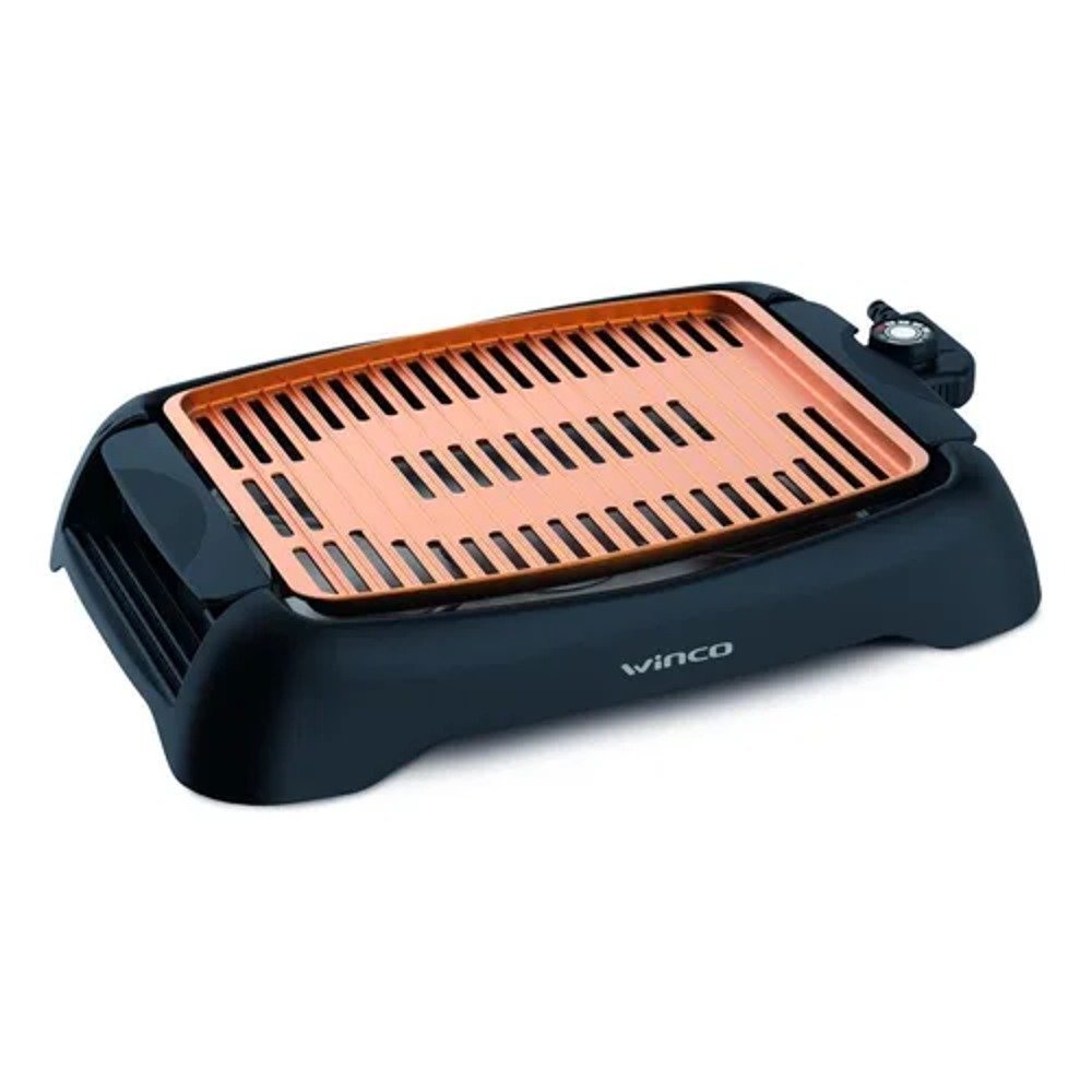 – Parrilla con recubrimiento ceramico – Termostato extraible – 5 niveles de coccion – Cocina sin humo y sin olor – Superficie ceramica.