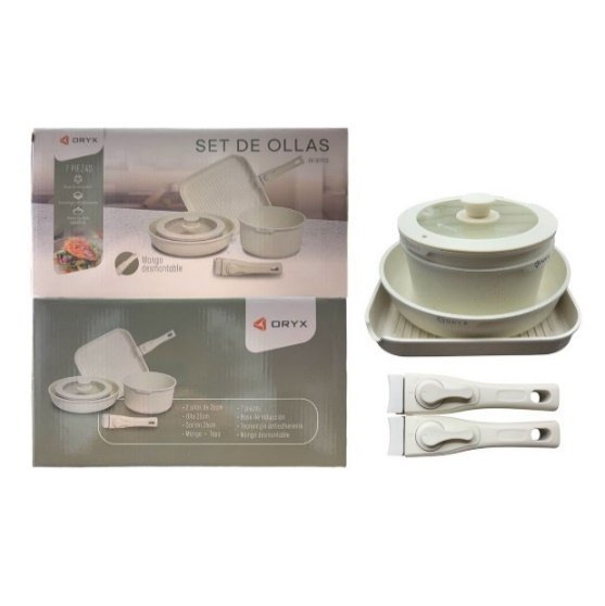 SET DE OLLAS 7PCS C/BASE INDUCCION + 2 MANGOS DESMONTABLES